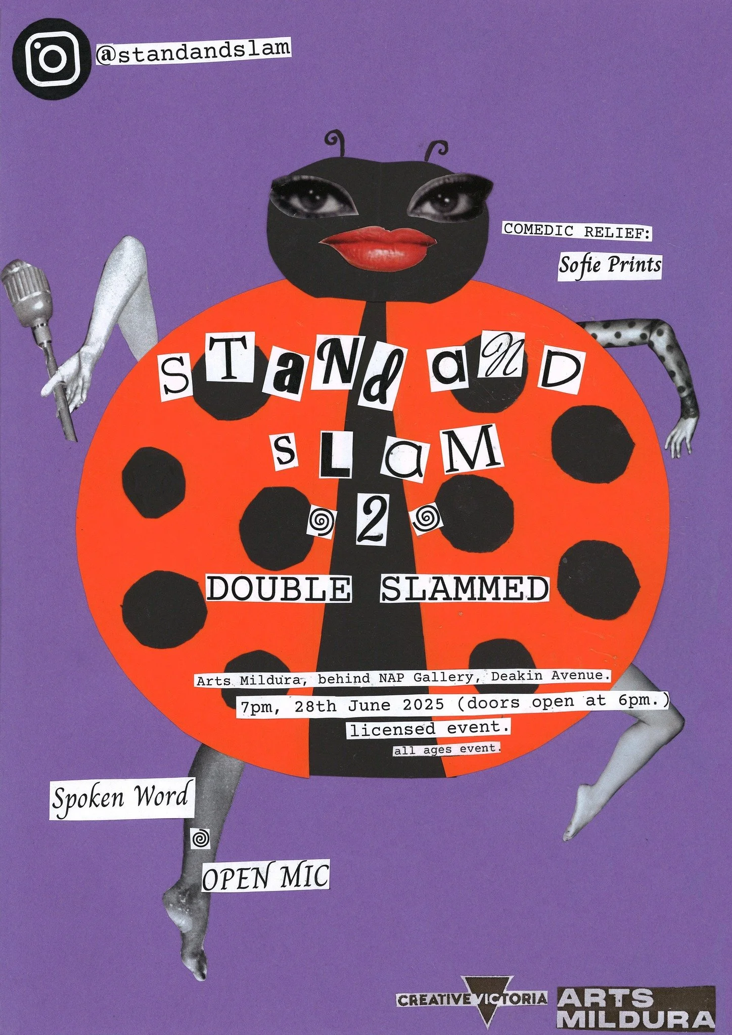 Stand + Slam is Arts Mildura’s regular poetry slam series — a welcoming stage for words, rhythm, and ideas. It’s a space where emerging and experienced voices alike come together to share stories, spark laughter, and explore big ideas in a supportive, respectful environment.
